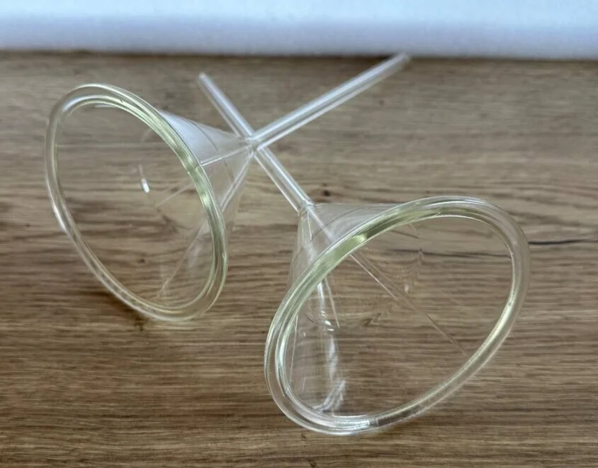 2 x Trichter Schott Duran Laborglas Analysentrichter Ø 11cm, Stiel ca. 26 cm